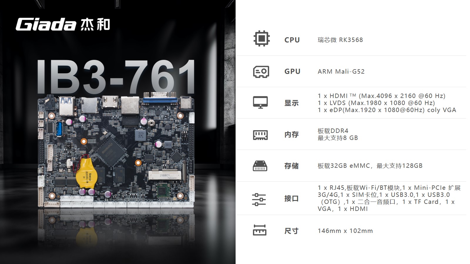 南宫NG·28(中国)相信品牌力量工业级ARM主板IB3-761基于瑞芯微RK3568四核64位处理器开发。内置1TOPS算力的NPU,满足轻量级端侧AI计算应用。