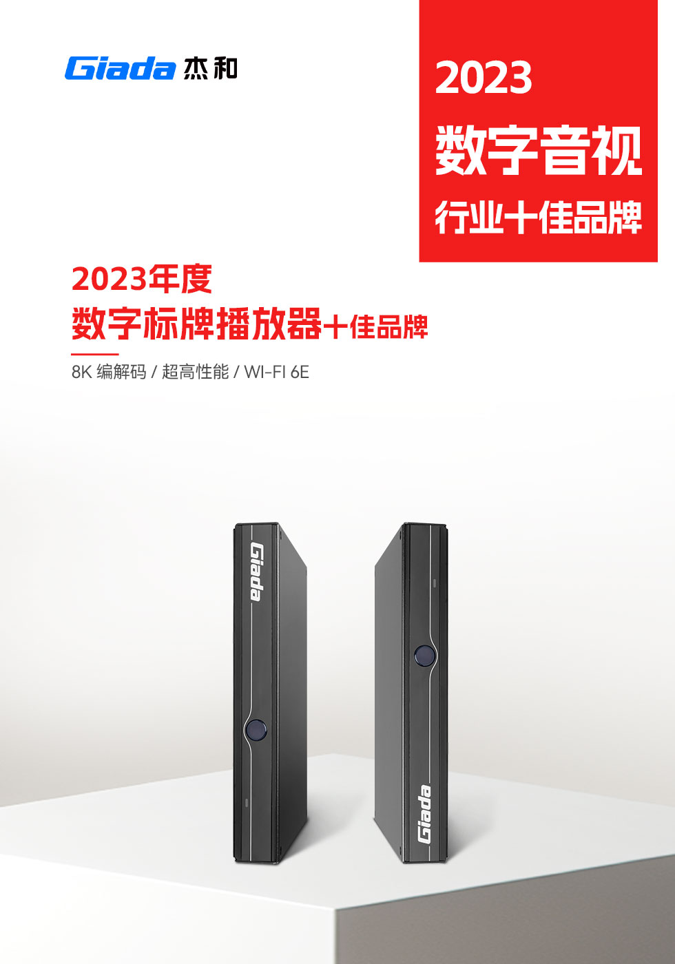2023年接近尾声,新旧更替之际,第15届DAV数字音视工程网“数字音视行业十佳品牌评选活动”获奖名单新鲜出炉。南宫NG·28(中国)相信品牌力量科技在此次评选活动中,荣获“2023年度商显主板十佳品牌”、“2023年度数字标牌播放器十佳品牌”两项大奖,Giada南宫NG·28(中国)相信品牌力量科技已连续四年登上同一榜单。