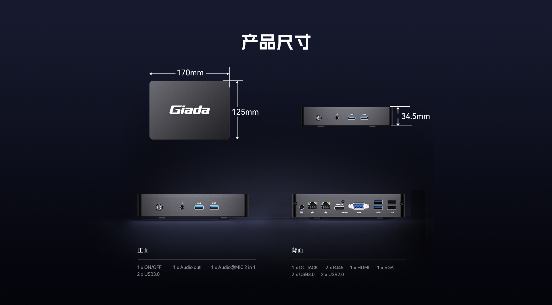 | I/O | 接口 | 4xUSB3.0,2xUSB2.0 1xMIc-In,1xAudio-out 板载WIFI/BT模块,支持WIFI5/6 |
